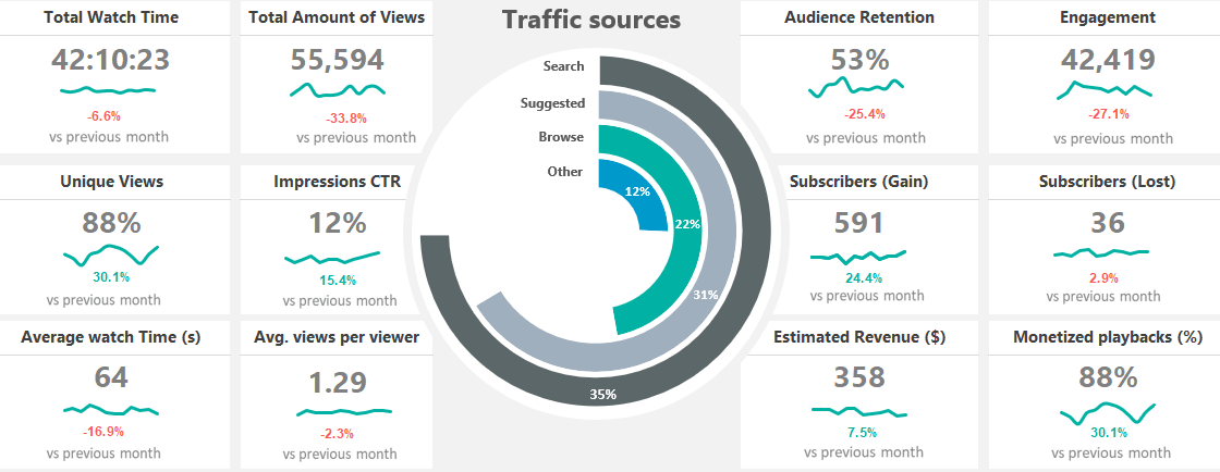 Tất cả các loại biểu đồ và bảng biểu cũng được trình bày trong cùng một trang, nhờ vậy nên việc phân tích các báo cáo được dễ dàng hơn khi bạn có thể theo dõi cùng lúc. Với tất cả những biểu đồ quen thuộc và có thể tùy chỉnh để có thể xem được những thông tin theo mong muốn mà công việc đọc hiểu báo cáo được đơn giản hơn.