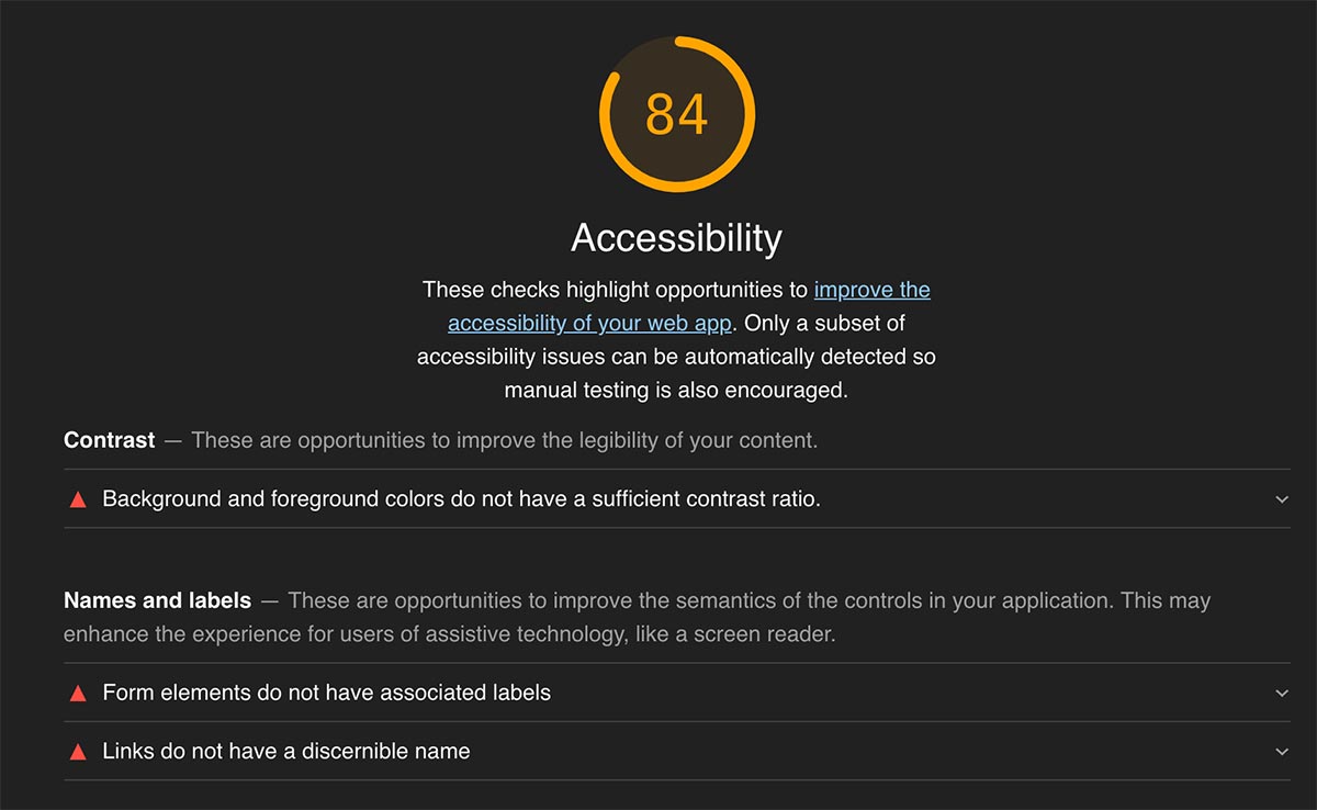 Kiểm tra toàn bộ khả năng truy cập của Lighthouse để có thể kiểm tra được mức độ sử dụng của một trang website. Điều này sẽ bao gồm kiểm tra lại toàn bộ các yếu tố quan trọng điển hình như nút hoặc có thể là liên kết. Mục đích để xem liệu chúng có được mô tả đầy đủ hay không hoặc liệu rằng hình ảnh có được gán thuộc tính ALT để nội dung của hình ảnh.